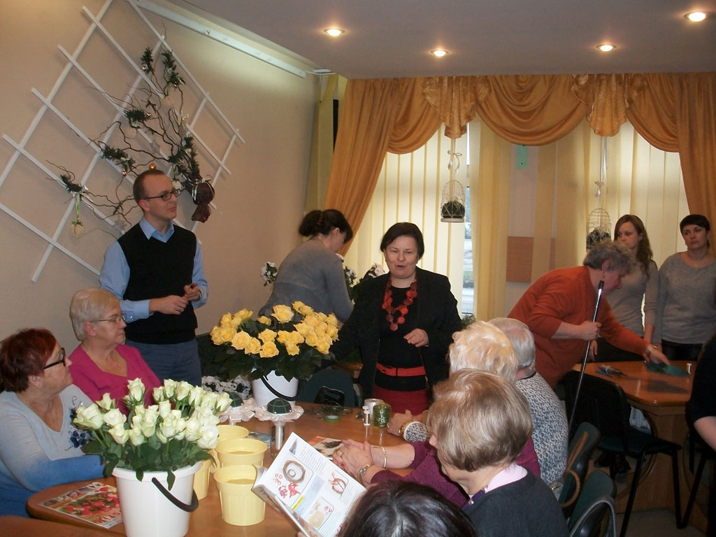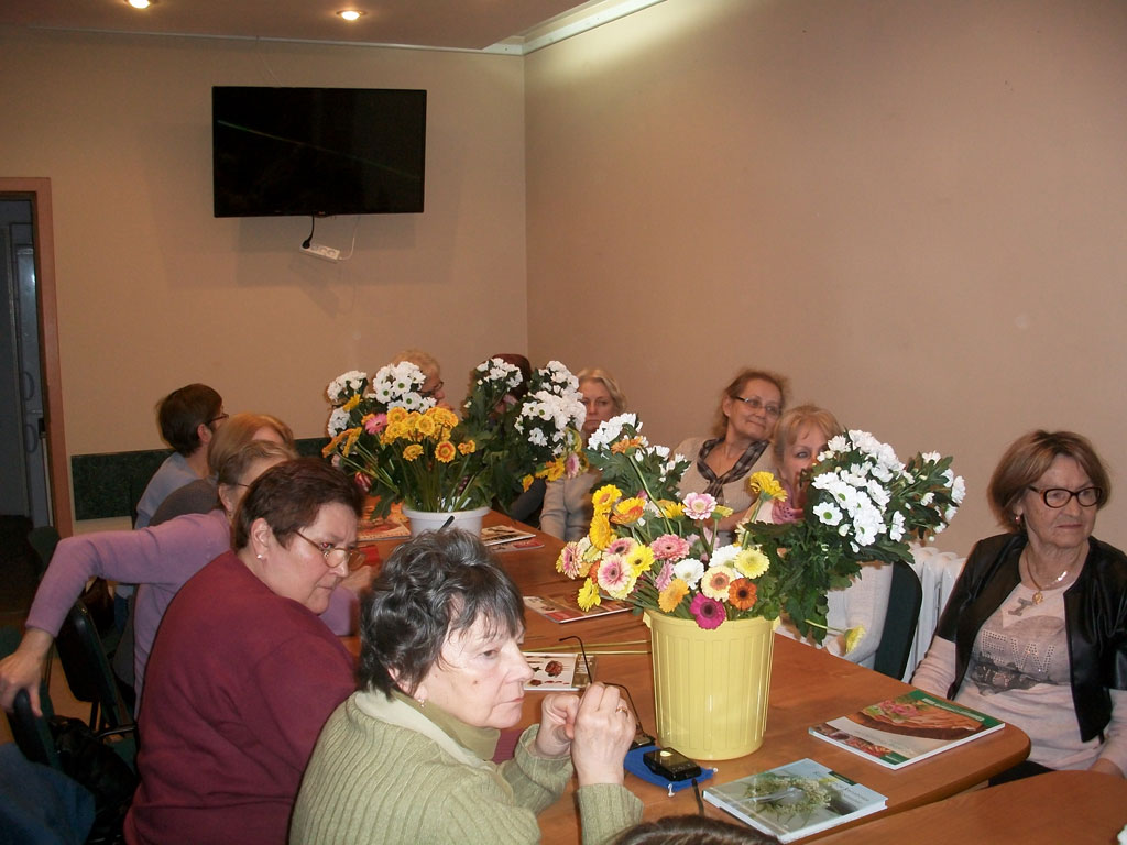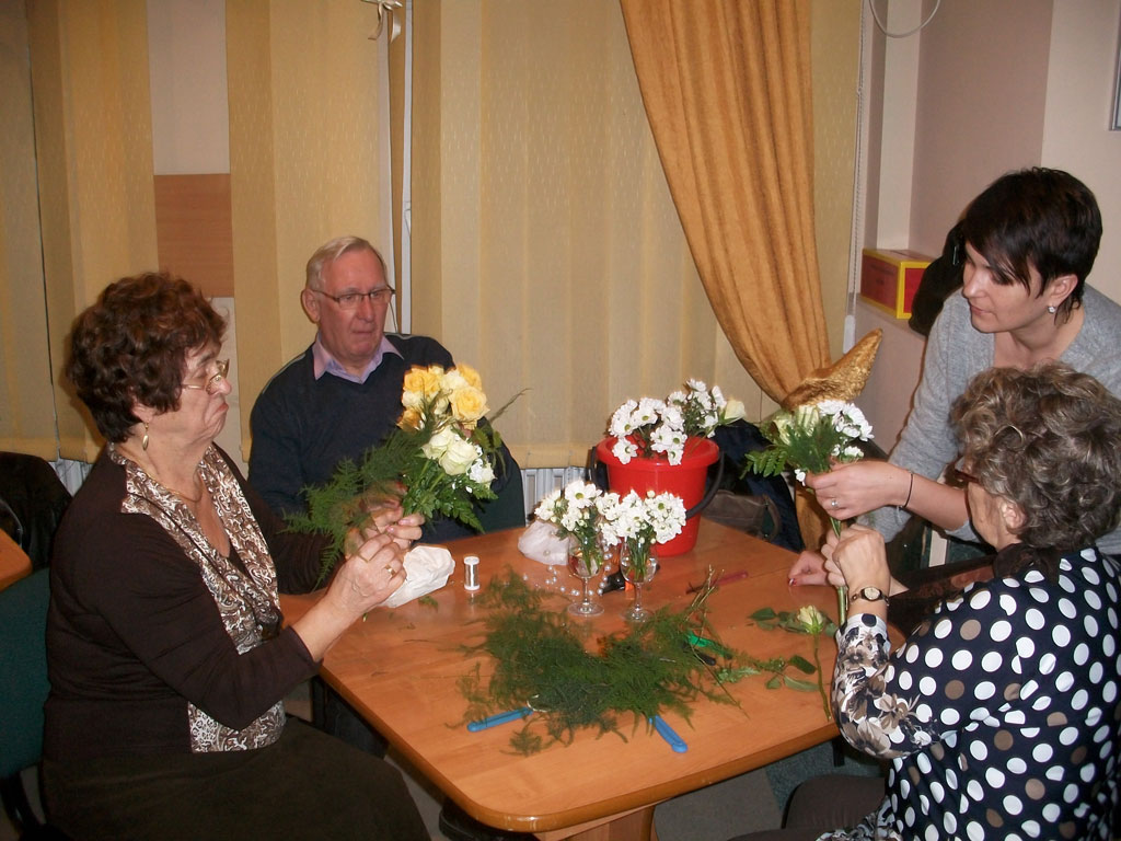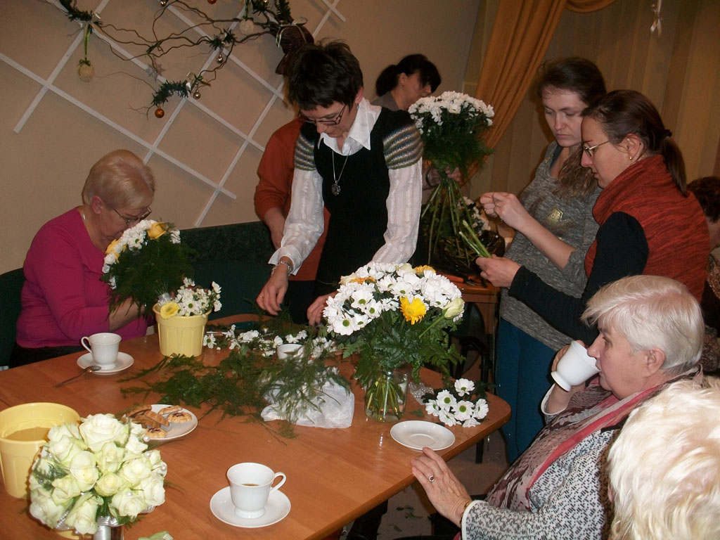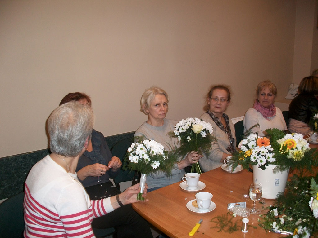 Warsztaty florystyczne w Klubie Seniora aktualnosci 21 stycznia 2015 Frekwencja na warsztatach florystycznych, w dniu 17.01.2015r. /w sobotę/, przeszła najśmielsze oczekiwania. Specjalistki florystki udzielały zebranym w klubie seniorom instruktarzu, dotyczącego tworzenia kwiatowych kompozycji. Pani Małgorzata Łazarczuk, wraz z fachowymi asystentkami, wtajemniczały zebranych w sposoby układania bukietów tzw. techniką skrętoległości. Użyto do tego celu popularnych: róż margaretek i gerberów. Ogromne zainteresowanie tą formą sztuki sprzyja wyznaczaniu kolejnych terminów warsztatów florystycznych. [Show picture list]